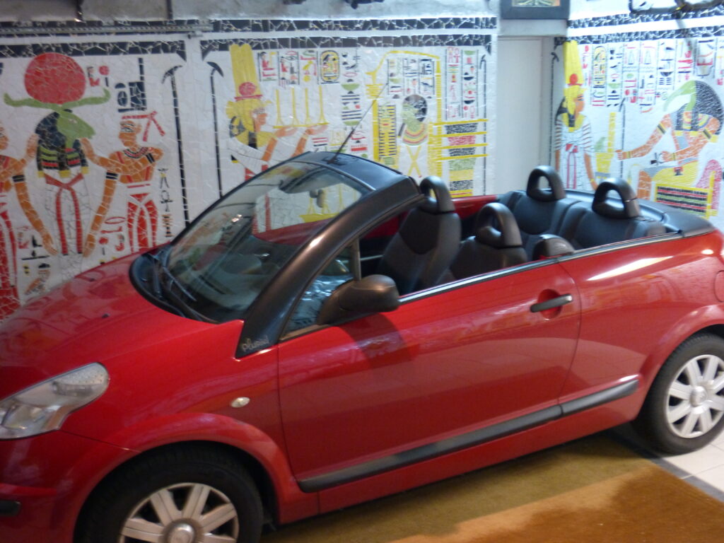 « Quelle drôle d’idée de faire ça dans un garage ! ». Je me souviens qu’à plusieurs reprises ma mère m’a dit que « c’est dommage de ne pas faire ça dans le salon»*. Le garage m’a toujours paru comme l’endroit idéal pour cette mosaïque. En effet, la tombe de Nefertari est un endroit sans fenêtre et sans lumière extérieure. De plus, c’est par définition un lieu intime où seules les personnes autorisées pénètrent. C’est un lieu qui n’est jamais montré et qui échappe à toutes les règles esthétiques. Ne viennent dans cette pièce que les personnes qui y sont invitées. C’est forcément le lieu idéal.